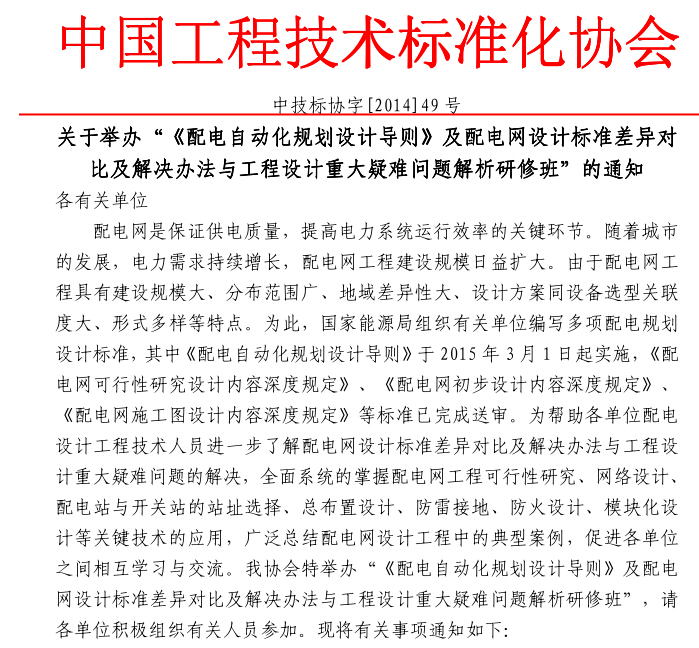 关于举办“《配电自动化规划设计导则》及配电