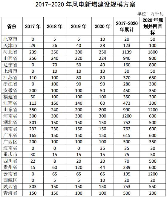其中,吉林、黑龙江、甘肃、宁夏、内蒙古、新疆自治区、新疆兵团暂不下达各年度新增建设规模。在国家能源局2月17日发布的2017年度风电投资监测预警结果的通知中,以上省(区)为风电开发建设红色预警区域,不得核准建设新的风电项目,并要采取有效措施着力解决弃风问题。